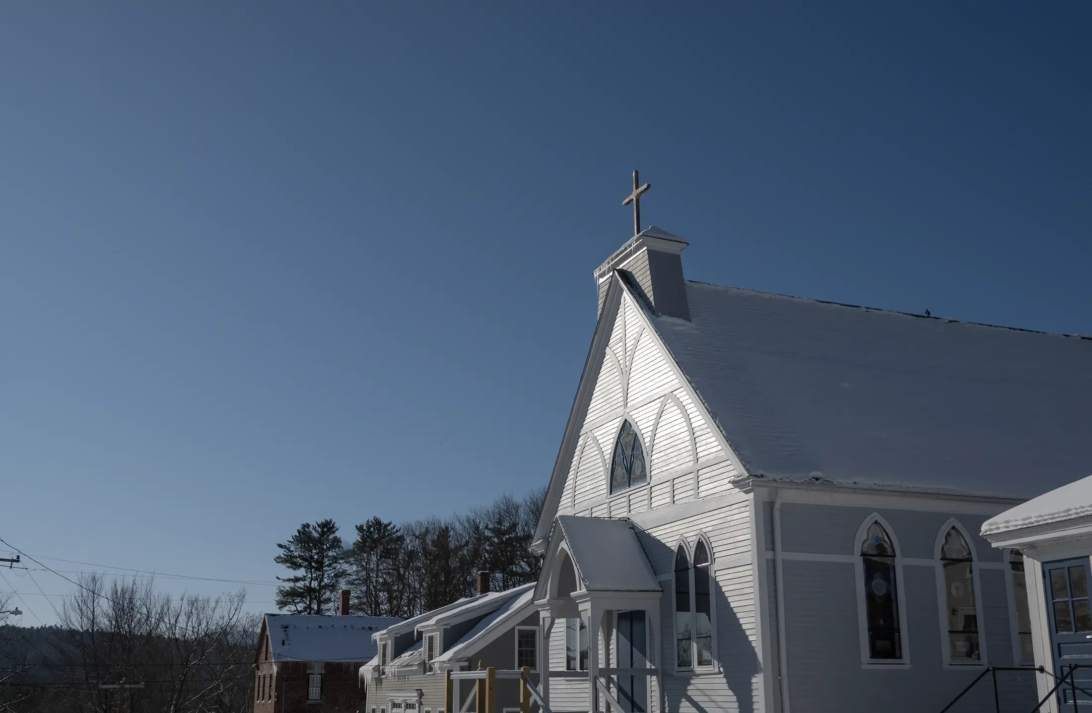 Beginning in 2024, Historic Harrisville embarked on a full renovation of the building with support from the community and a grant from the NH Community Development Finance Authority. All of the stained glass windows were removed and refurbished in Portsmouth, NH, while the interior was completely re-wired, insulated, and painted with a new heating and cooling system and state of the art AV equipment.